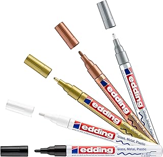 edding 751 Marqueur peinture brillante - noir, blanc, or, argent, cuivre - 5 feutres peinture brillante - pointe ronde 1-2mm - pour dessin, coloriage, scrapbooking - étanche, très opaque