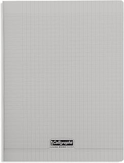 Calligraphe 18196C - Un cahier piqué (gamme 8000 de Clairefontaine) 96 pages 24x32 cm 90g grands carreaux, couverture polypro (plastique), Gris