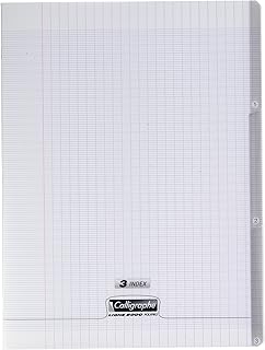 Calligraphe 18228C - Un cahier piqué 3 index (gamme 8000 de Clairefontaine) 96 pages 24x32 cm 90g grands carreaux, couverture polypro (plastique), Incolore