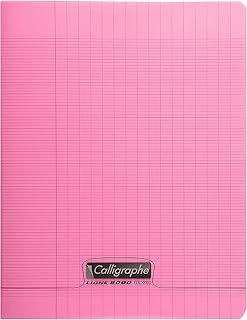 Calligraphe 18181C - Un cahier piqué (gamme 8000 de Clairefontaine) 96 pages 24x32 cm 90g grands carreaux, couverture polypro (plastique), Rose