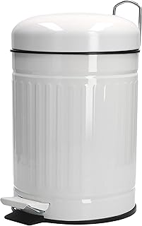 MamboCat Poubelle blanche 3 L I Petite poubelle de salle de bain I Seau en plastique amovible avec anse noire I Poubelle à pédale avec couvercle en métal I Poubelle ronde vintage I Poubelle à compost