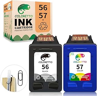 Cartouche d'encre remanufacturée COLORETTO pour remplacer Les Cartouches HP 56 57 (1 Noire,1 Couleur) à Utiliser avec Les imprimantes 1210 1315 1350 2105 (Edition spéciale incluant 1 Clip pour Stylo)