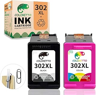 Cartouche D'encre Remanufacturée COLORETTO pour Remplacer les Cartouches HP 302xl 302 XL (1 Noire,1 Couleur) à utiliser avec les imprimante 1110 2130 4520 (Edition spéciale incluant 1 clip pour stylo)