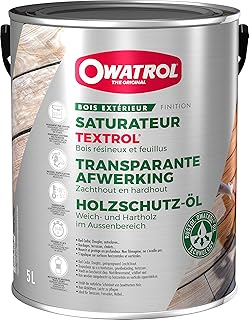 OWATROL – TEXTROL – Saturateur Bois Extérieur à Base d'Huiles Naturelles Végétales pour Chalets Barrières Abris de Jardin Bardages Bois Extérieur – Huile Terrasse Bois – Incolore – 5 L
