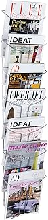Alba - Présentoir Mural - Fil Métal - 7 Compartiments A4 - 25 x 112 cm - Porte Revues - Porte Journaux - Porte Revues Mural - Porte Document - Présentoir Vintage - Présentoir Design - DDFIL7M