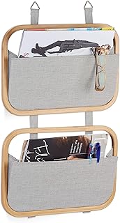 Relaxdays Étagère murale organiseur de porte rangement suspendu porte-revues porte 2 poches HxlxP: 60 x 40 x 1,5 cm, nature-gris