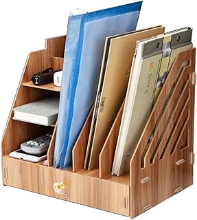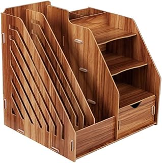 LYN Organiseur de Bureau, Organiseur de Bureau en Bois Multifonctionnel, avec 2 Sections de Porte-fichiers A4, 5 Compartiments et 1 tiroir pour la Maison, Le Bureau et l'école