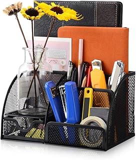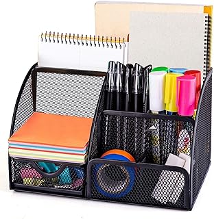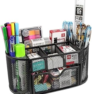 Pipishell Organiseur de bureau multifonction en maille avec 6 compartiments et 1 tiroir pour la maison, le bureau, l'école, la salle de classe, l'atelier