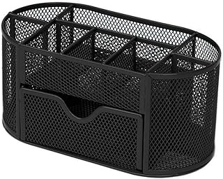 Organiseur de bureau en maille avec tiroir, multi-usage en métal pour papeterie et bureau (noir)
