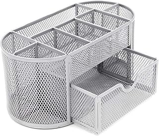 VANRA Organiseur de fournitures de bureau en maille métallique avec 8 compartiments et tiroir (argenté)