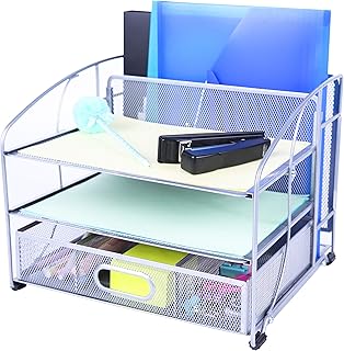 Simple Trending Organiseur de bureau à 4 plateaux en maille avec tiroir et section verticale pour bureau et maison Argenté