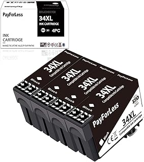 PayForLess Lot de 4 cartouches d'encre 34 XL compatibles avec Epson Workforce Pro WF-3720dWF WF-3725DWF WF-3720 WF-3725 Noir
