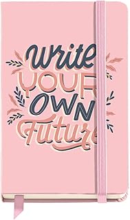 MIQUELRIUS – Cahier couverture rigide – Dimensions 90 x 140 mm, 100 feuilles blanches, fermeture avec élastique, couleur rose, motif Write