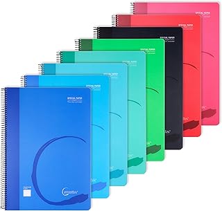 MP Lot de 8 cahiers avec quadrillage en spirale, couverture en plastique, 80 feuilles, 310 x 215 mm