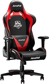 AutoFull Chaise Gaming Ergonomique Chaise de Bureau Fauteuil Cuir PU Chaise Gamer,Hauteur D'assise et Inclinaison du Dossier Réglables,Appui-tête et support lombair,Rouge(Garantie de trois ans)