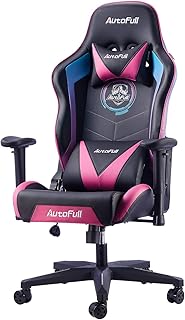 AutoFull Chaise Gaming Ergonomique Chaise de Bureau Fauteuil Cuir PU Chaise Gamer,Hauteur D'assise et Inclinaison du Dossier Réglables,Appui-tête et support lombair,Bleu (Garantie de trois ans)