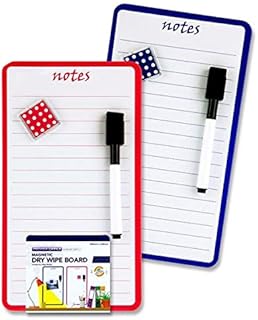 Premier Stationery Tableau magnétique effaçable à sec « Notes » Comprend un marqueur effaçable à sec et un aimant. Lot de 4. Rose et bleu 140 mm x 254 mm.