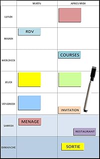 Calendrier magnétique pour frigo KIT Planning Frigo magnétique effaçable 30X20 cm A4 + 16 magnets effaçables + 1 marqueur effaçable magnétique, planning familial, 7 jours matin + après midi