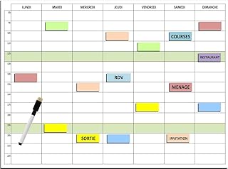Calendrier magnétique pour frigo KIT Planning Familial Frigo magnétique effaçable 30X40 cm A3 + 16 magnets effaçables + 1 marqueur effaçable magnétique, planning familial, 7 jours de 8h à 23h